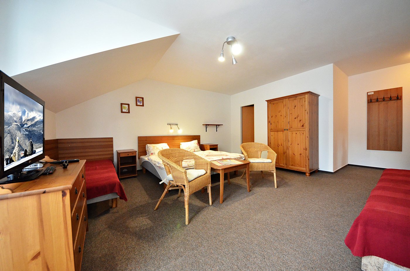 As the pension is situated near the ski area Medvedin (10-minutes walk) and St. Peter, it is ideal for downhill skiing. There is a free Ski bus service operating, the bus stop is only 5-minute walk from the pension. 85 % of the slopes are equipped with artificial snow. Cross-country skiing fans can use the always prepared cross-country skiing trails in the Horni Misecky - Benecko area.